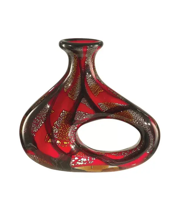 Яркие, яркие цвета в сочетании с ультрасовременным стилем делают нашу вазу «Николас» центром внимания в любой комнате вашего дома или офиса. Эта авангардная ваза выполнена в стиле свободной урны насыщенного кардинально-красного цвета. Яркие чёрные мазки кисти по всей поверхности. Размеры: 28,5 x 6,5 x 25 см. Выдувное художественное стекло ручной работы. Аксессуары. Ваза. Многослойное стекло. Протирать.