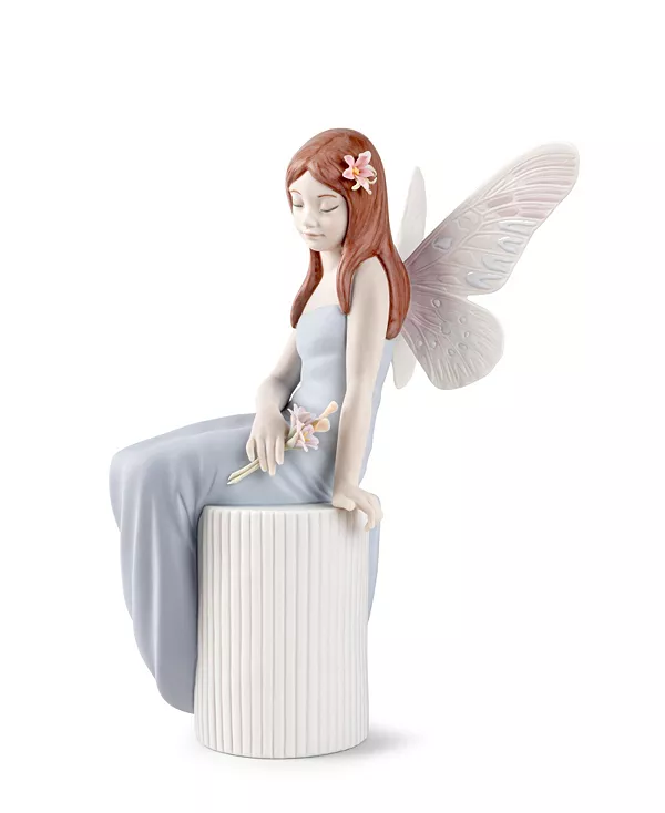 Фарфоровая фигурка крылатой феи природы. Ежегодная работа 2023 года. «Фея природы», ежегодная работа 2023 года, может похвастаться всеми чертами лучших произведений искусства. Она изображает фею природы в спокойной позе, вдохновленной миром фэнтези и легенд. Она выполнена из матового фарфора с декором, основанным на мягких тонах, которые контрастируют с более насыщенным цветом волос и глаз. В этом произведении особенно стоит отметить гравировку прямыми линиями на основании, на котором сидит фея природы, а также узоры на крыльях и цветах. Конечный результат — произведение, символизирующее красоту и хрупкое равновесие природы.