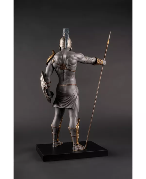 Фарфоровая скульптура спартанцев, прославленных воинов Древней Греции. Когда царь Леонид и триста спартанских гоплитов под его командованием сдерживали персидскую армию у Фермопильских гор, мужество и самопожертвование этих греческих воинов навсегда вошли в область легенд. Эта черная фарфоровая скульптура изображает одного из этих храбрых воинов, вооруженного своим впечатляющим шлемом с плюмажем, маской, которую можно надевать или снимать, открывая лицо воина благодаря магнитной системе щита, копья и доспехов. Богатство деталей, дополненное декором, точно смоделированная анатомия и тщательный орнамент демонстрируют необычайную степень виртуозности. Изготовлена из черного фарфора и украшена металлической медью, синей и черной эмалью. Щит окрашен черным люстром с эффектом мрамора, а шлем украшен состаренным серебристым люстром. Результатом является поразительная и мощная фигура, которая одновременно благородна и элегантна.
