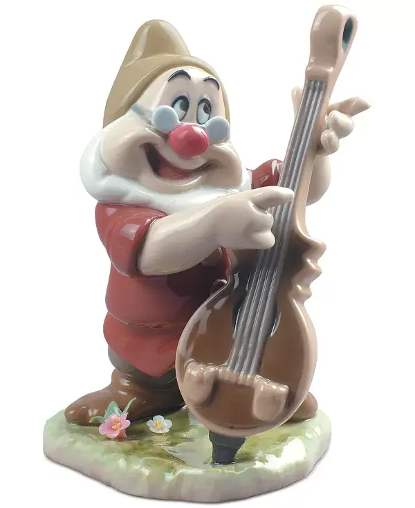 Один из семи спутников Белоснежки, фигурка Льядро Дока, с весёлыми глазками, выглядывает из-за его фирменных очков, когда он играет на своём инструменте.