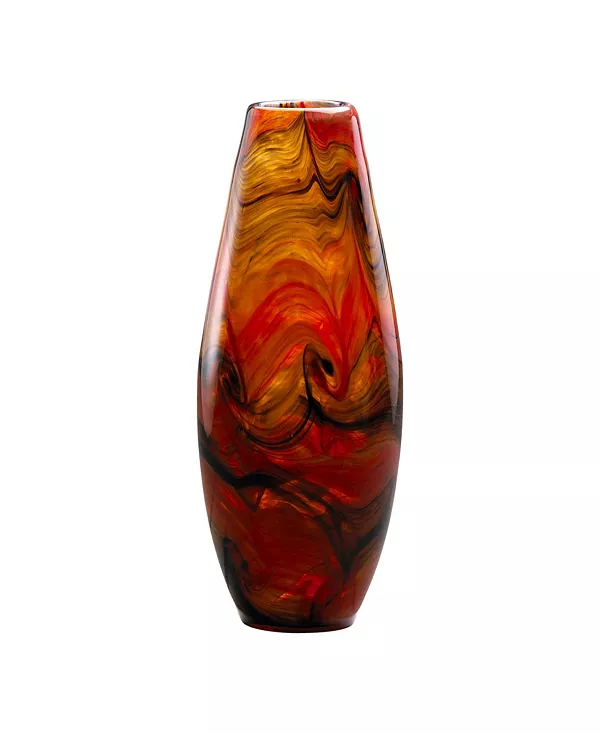 Добавьте уникальности вашему настольному ансамблю с помощью этой итальянской вазы. Этот абстрактный, красочный предмет из стекла отличается привлекательным завитковым узором и гладкой поверхностью с отделкой «Кармель».