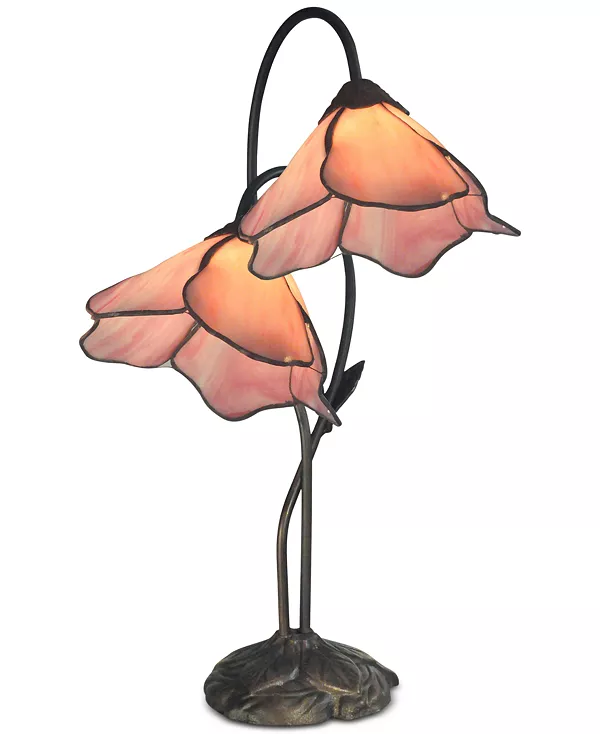 Элегантные абажуры в виде цветков лилии розового оттенка, изготовленные из прокатанного вручную художественного стекла на витом основании с бронзовым покрытием настольной лампы Poleking Lily от Dale Tiffany, придадут любому пространству очаровательный всплеск цвета и романтическую красоту.