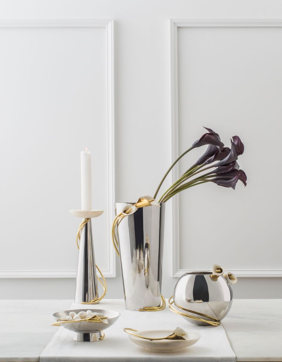 Неподвластный времени дизайн ореховой тарелки в форме каллы от художника Майкла Арама вдохновлен природной красотой цветка, в честь которого она названа. Используйте ее, чтобы придать элегантности орехам и другим угощениям на вечеринке или встрече.