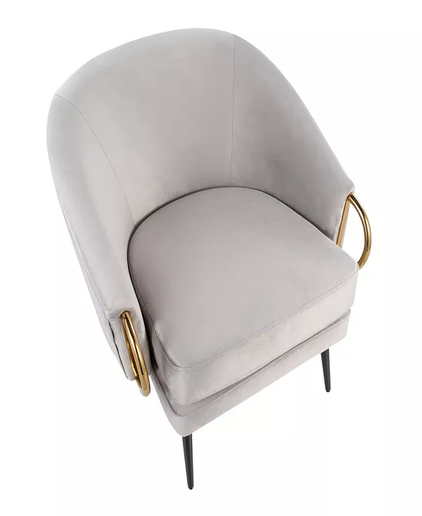 Шикарный современный стиль ярко проявляется в уникальном дизайне кресла Claire Accent. Широкая закругленная спинка, элегантные золотистые подлокотники и чёрный металлический каркас сделают его идеальным предметом для любой гостиной.