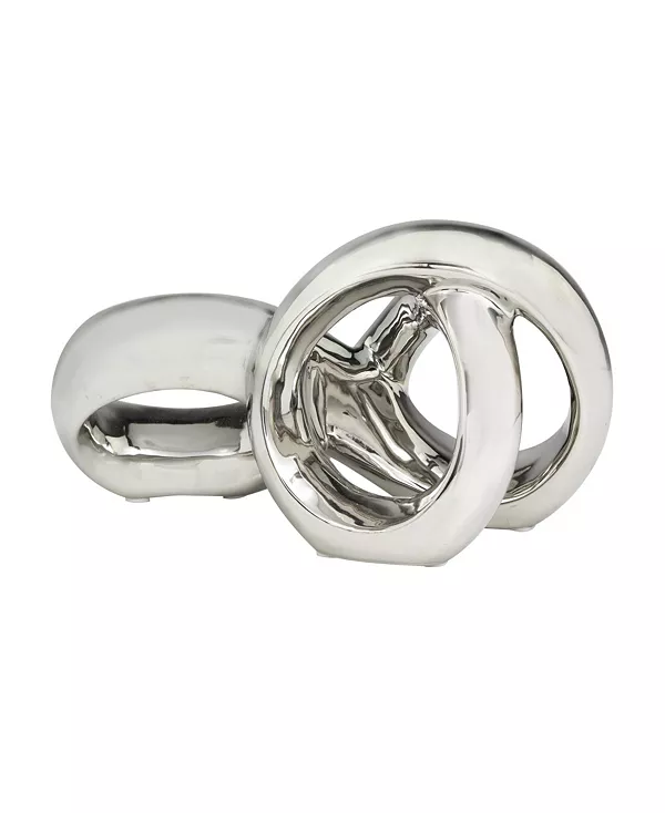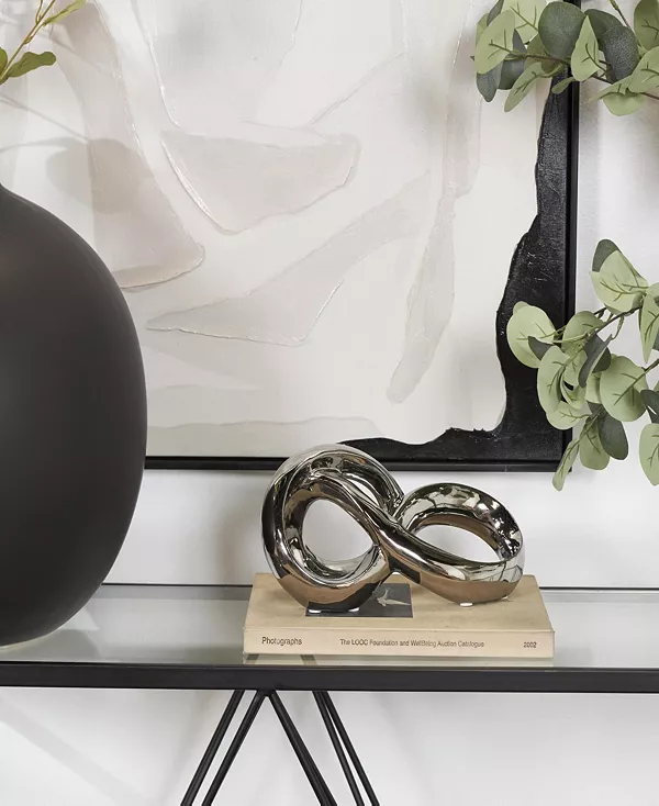 Добавьте эффектный акцент к своему консольному столику или книжной полке, установив эту скульптуру в стиле бесконечности поверх стопки книг, имитирующую современную скульптуру. Это одинарная керамическая статуэтка серебристого цвета. Современный стиль.