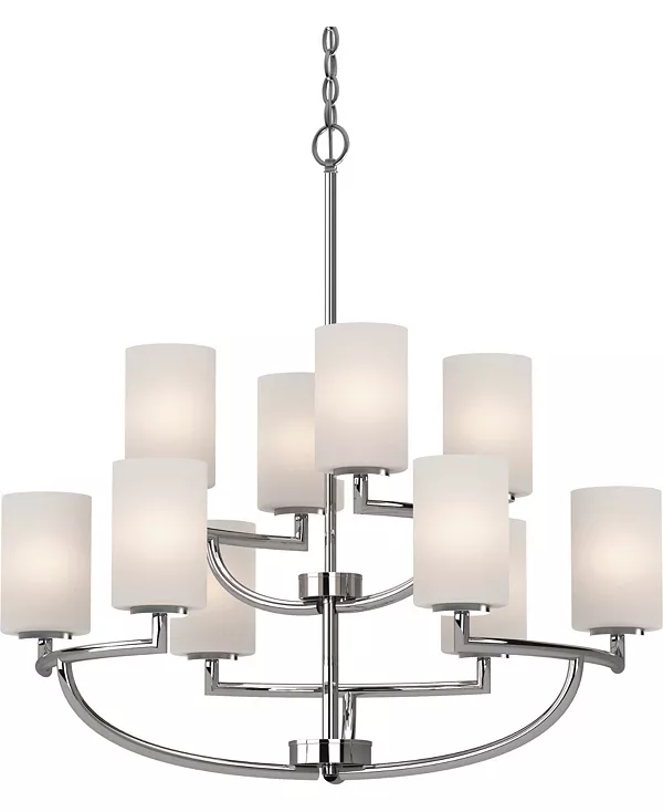 Почувствуйте современную и традиционную красоту этой хромированной подвесной люстры. Изящные геометрические формы гармонично сочетаются в этой изысканной коллекции. Люстра заключена в стильное цилиндрическое матовое стекло.