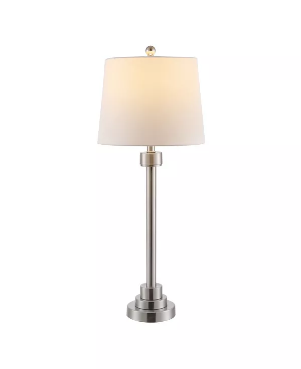 Эта настольная лампа Baxter, напоминающая своим ступенчатым основанием очертания Нью-Йорка, поражает своей сдержанной простотой. Никелированная отделка и лаконичный силуэт Baxter неподвластны времени, а белый абажур в форме барабана дополняет образ ноткой современного шика.