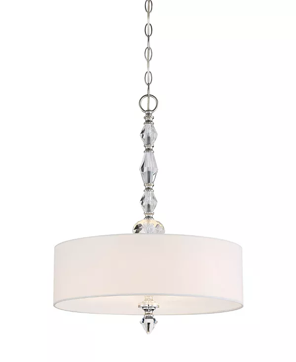 Хромированная отделка с белым льняным абажуром и гранёными кристаллами
