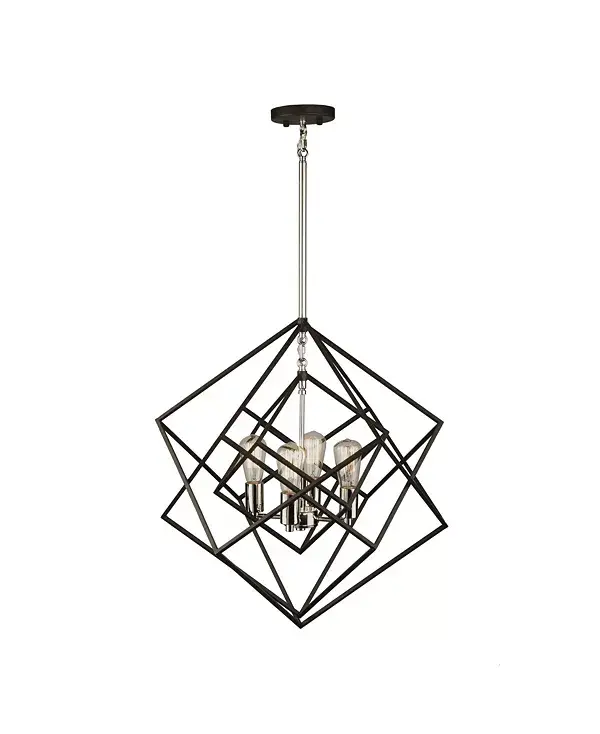 Эта двухцветная квадратная люстра из коллекции Artistry с потрясающим дизайном мгновенно стала классикой. Внутренняя часть выполнена из полированного никеля, а внешняя – из матового чёрного материала. В комплект входят несколько стержней для прямого подвешивания на скошенных потолках.