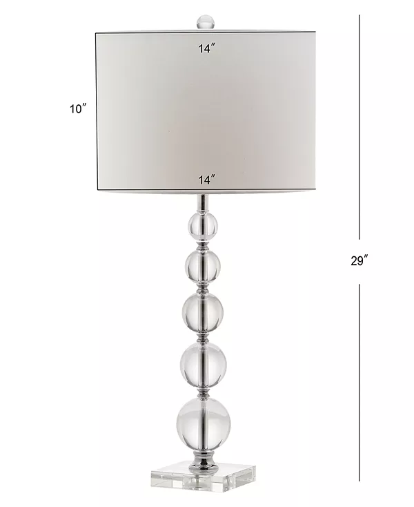 Добавьте изысканности в свою комнату с помощью настольной лампы Liam Crystal Ball. Стопка градуированных хрустальных шаров расположена на прямоугольном постаменте и чётком абажуре в форме барабана.