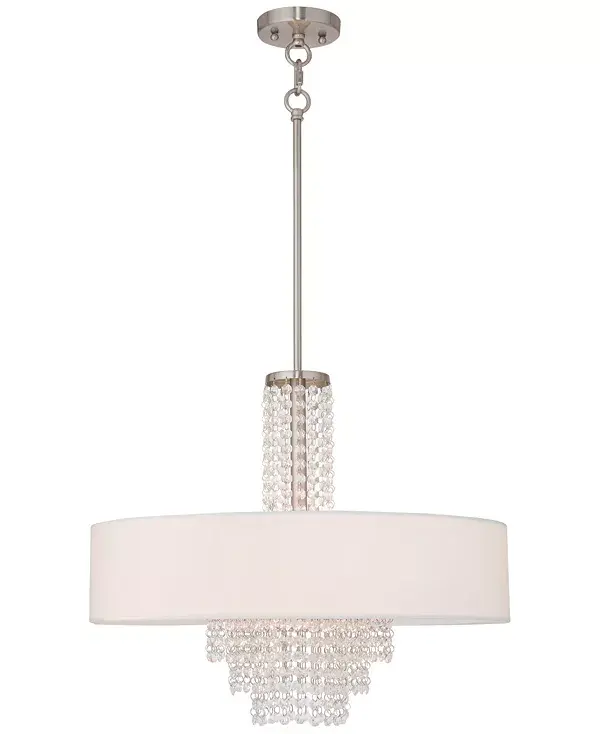 Создайте потрясающее впечатление с помощью люстры Carlisle на 5 ламп ручной работы от Livex. Четыре яруса ниспадающих кристаллов добавляют гламура и драматизма вокруг большого абажура ручной работы.