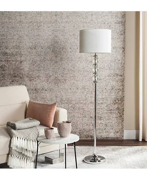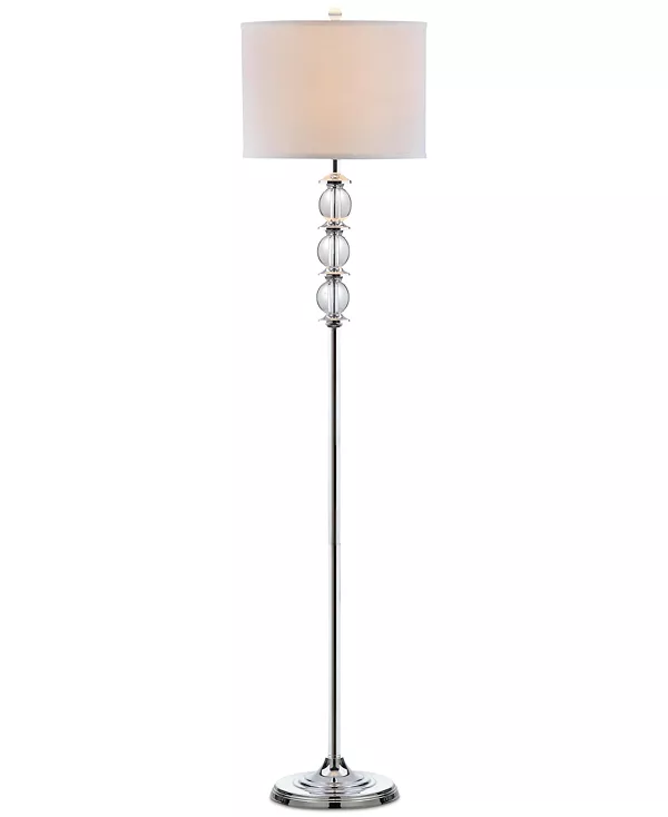 Тонкий, мерцающий стержень этого великолепного торшера Riga от Safavieh изящно подчеркивается воротниками и прозрачными хрустальными шарами, которые добавляют нотку блеска и гламура его современному дизайну.