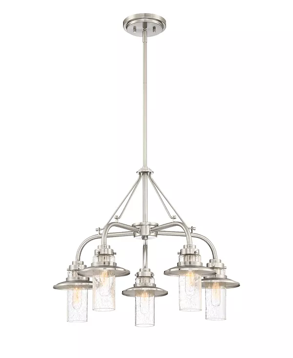 Коллекция Dover переосмысливает роскошь фермерского дома, сохраняя при этом его очарование. Благодаря сатинированной платиновой отделке и четким линиям эта люстра станет изюминкой вашей комнаты. Прозрачные абажуры с эффектом потертости подчеркивают лампочки в стиле ретро и создают уникальный световой узор вокруг светильника.