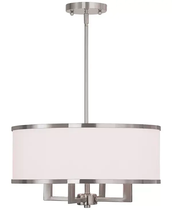 Добавьте изысканности в вашу столовую или гостиную с помощью этой 4-рожковой люстры от Livex. Эта люстра ручной работы из коллекции Park Ridge имеет тёплый шёлковый абажур с холодным серебристым оттенком.