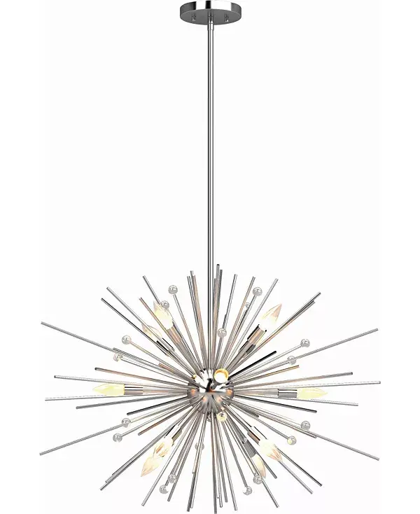 Вдохновленная яркой красотой космоса, эта потрясающая люстра из полированного никеля с нижним стержнем – настоящая звезда. Изящные, чёткие линии расходятся от центра, словно эффектная вспышка звезды.