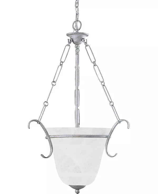 Этот стильный подвесной светильник выполнен в форме чаши из алебастрового стекла с красивыми завитками. Расходящиеся наружу завитки и цепочка придают этому светильнику выразительный и индивидуальный характер. Отделка платиновой ржавчиной выполнена вручную мастерами.