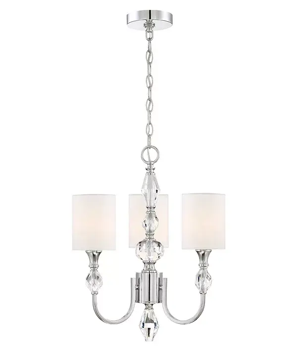 Хромированная отделка с белым льняным абажуром и гранёными кристаллами