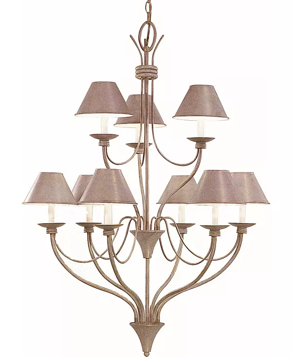 Эта стильная подвесная люстра оснащена металлическими коническими абажурами в стиле ампир. Отделка «Прерийный камень» выполнена вручную искусными мастерами. Изысканные петли придают изделию выразительный и смелый вид.