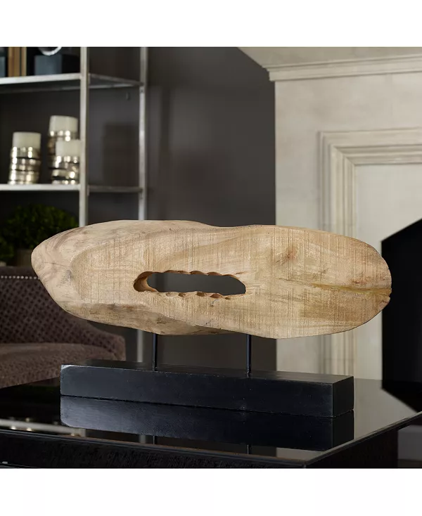 На каминной полке, книжном шкафу или столе естественная текстура и трещины на дереве скульптуры из манго ручной работы от Uttermost восхищают своим утонченным стилем в восточноазиатском стиле.