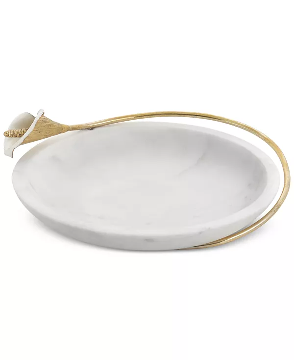 Мраморное блюдо «Калла Лили» Майкла Арама, украшенное тонким, изящным цветком, выполненным в скульптурных деталях, можно использовать как сервировочный контейнер для конфет в обертке или как поднос для безделушек.