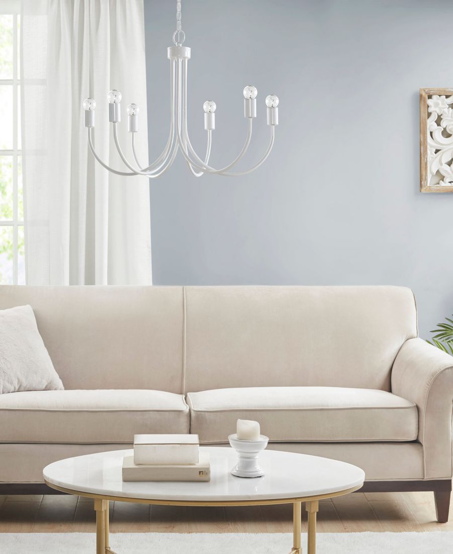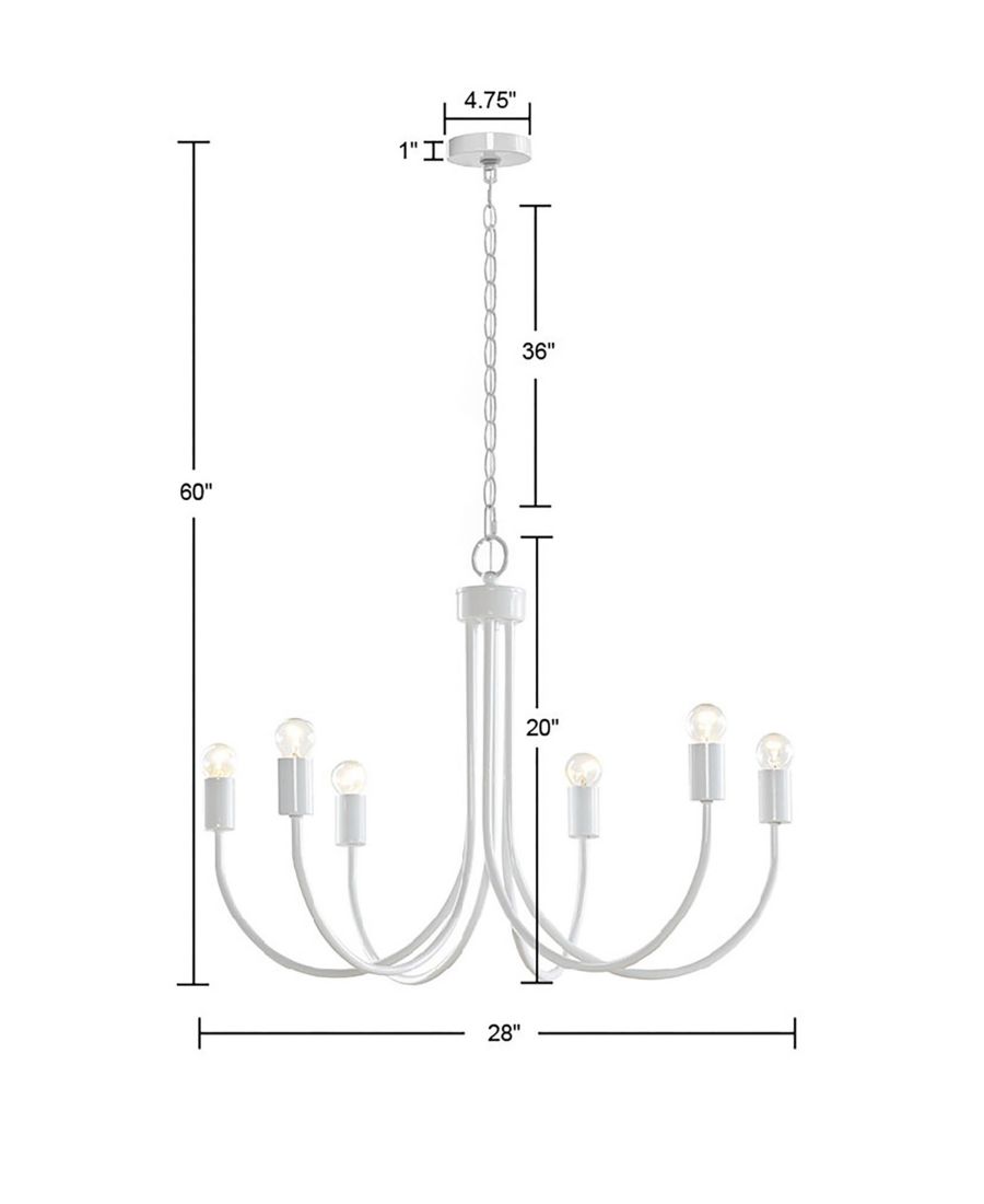 Люстра 510 Design Ellie привнесет простоту и изысканность в вашу кухню или столовую. Эта люстра на 6 лампочек имеет современную глянцевую белую отделку цельнометаллического каркаса, создавая шикарный переходный дизайн.