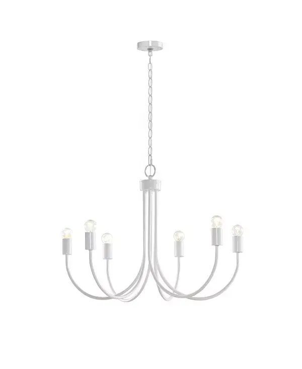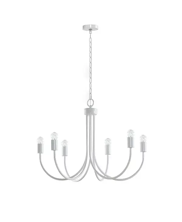 Люстра на 6 лампочек имеет изогнутый силуэт и глянцевую белую отделку