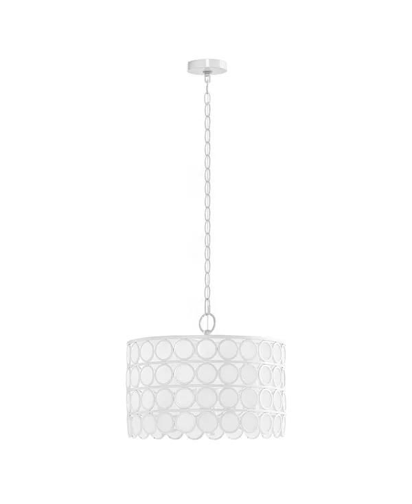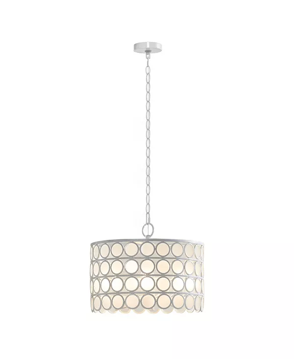 Осветите свою столовую или кухню элегантной люстрой Hampton Hill Abbot. Эта люстра с белой металлической отделкой оснащена абажуром в форме барабана с белыми кругами, что создает уникальный образ середины века.
