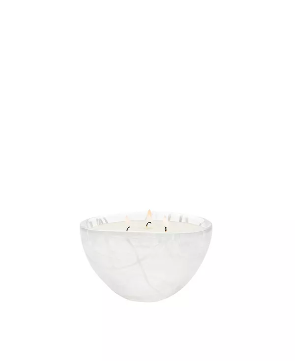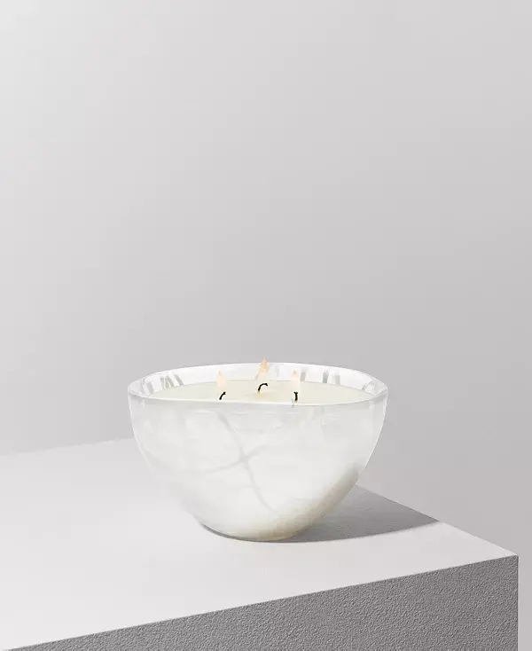 Контрастная белая свеча имеет успокаивающий аромат с нотами бергамота, мускатного ореха и ванили