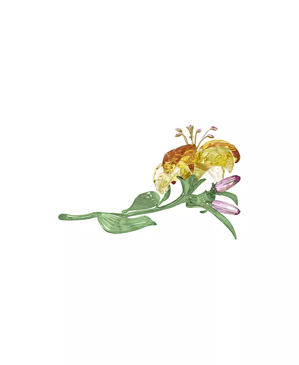 Лилия – непреходящий символ чистоты и невинности. В этой скульптуре в натуральную величину Swarovski изящно воплотил эти качества в ослепительном творении, состоящем из 633 граней. Каждая деталь цветка идеально проработана, с яркими оттенками жёлтого и розового, а также элегантными стеблями и листьями из зелёного лакированного металла. Эта горизонтальная композиция отдельно стоящая и станет поистине впечатляющим предметом сервировки стола в вашем доме.