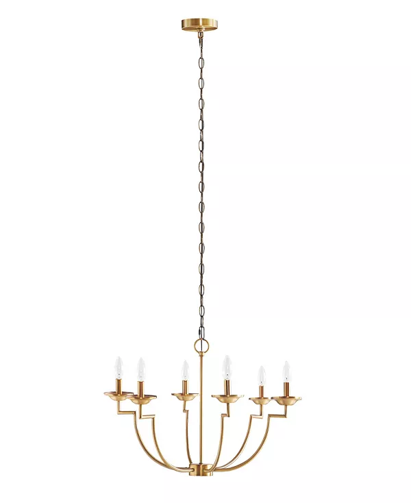 Люстра Hampton Hill Savor, дизайн которой вдохновлен традиционными канделябрами, станет элегантным дополнением к интерьеру вашей столовой. Эта изысканная люстра имеет 6 изогнутых рожков с золотистой металлической отделкой, что создает роскошный переходный образ.