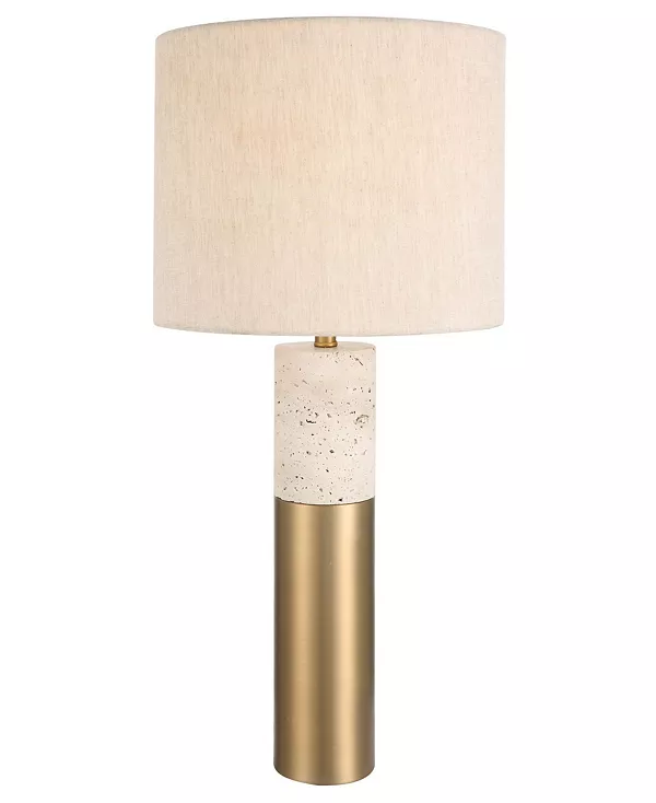 Настольная лампа Gravitas оправдывает своё название благодаря изысканной отделке и дизайну. Основание из железной колонны выполнено из элегантной матовой латуни с покрытием и столешницей из пористого камня цвета слоновой кости. Лампу дополняет непринуждённый светло-бежевый льняной абажур с лёгкой текстурой.