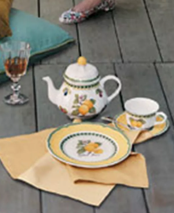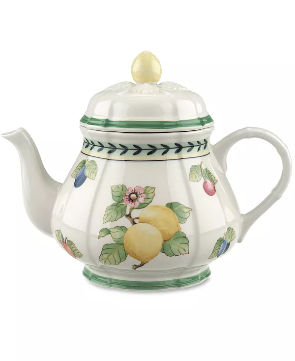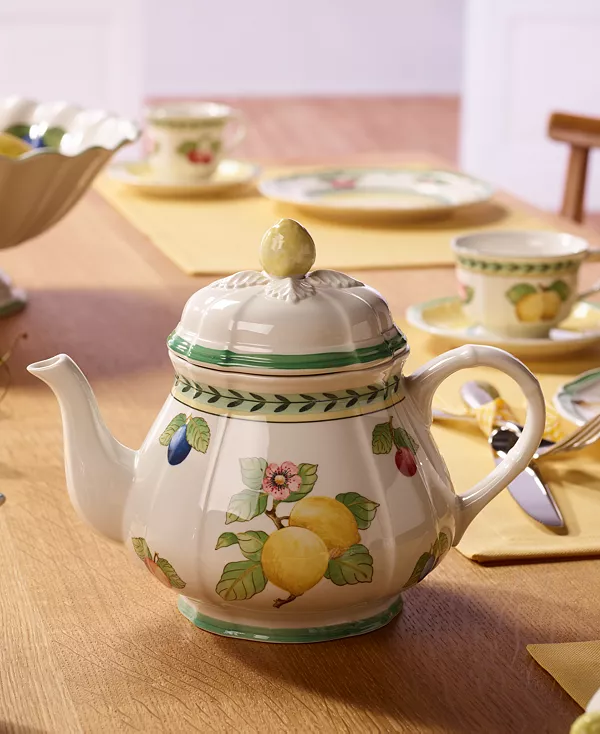 Привнесите в свой стол богатство французской сельской местности с этой яркой коллекцией посуды Villeroy & Boch, сочетающейся друг с другом. Чайник в форме фестончатого бортика украшен узором из летних фруктов и расположен на кремово-белом фоне. Дополните свой сервиз этими великолепными предметами. Фарфор можно мыть в посудомоечной машине и использовать в микроволновой печи. Villeroy & Boch создает уникальную посуду с 1748 года. Сделано в Германии.