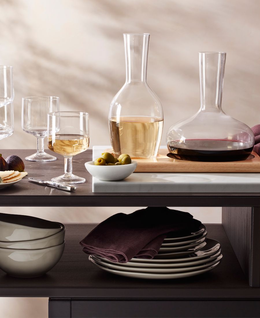 В комплект входят: 1 высокий графин, 1 широкий графин и 1 поднос для графина.