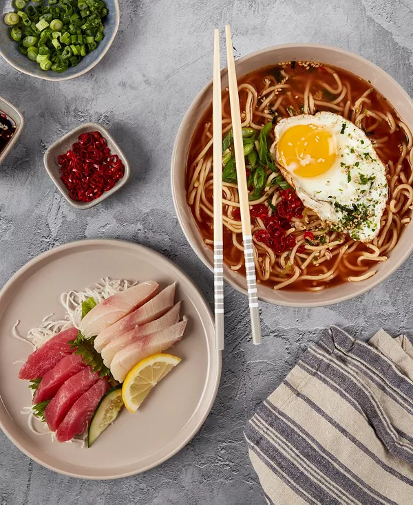 Поднимите свои кулинарные впечатления на новый уровень с этим набором мисок для лапши рамен от INFUSE, который привносит современное удобство в классическую любимую посуду.
