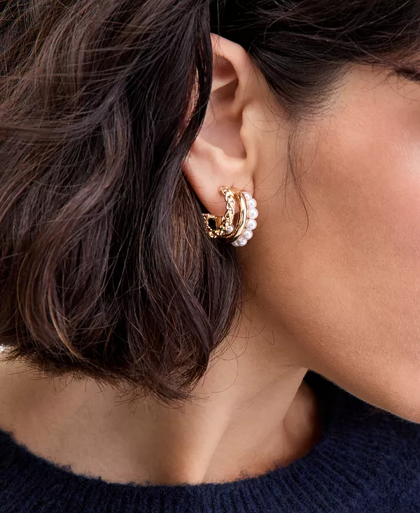 Серьги-Кольца с искусственным жемчугом, эксклюзив от Macy's On 34Th, white 2 562₽