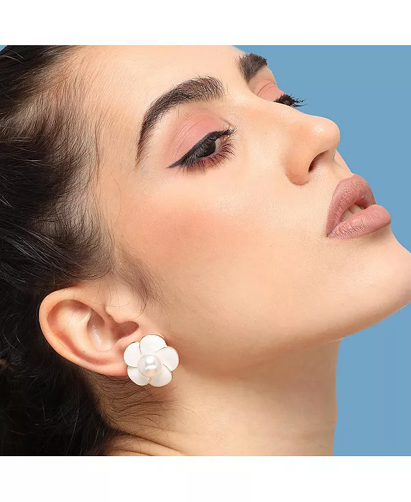 Женские серьги-гвоздики с цветами Sohi, white