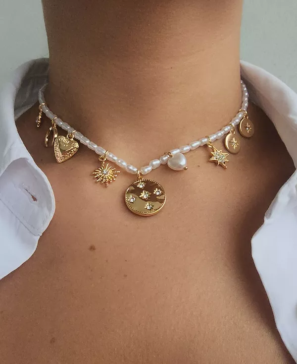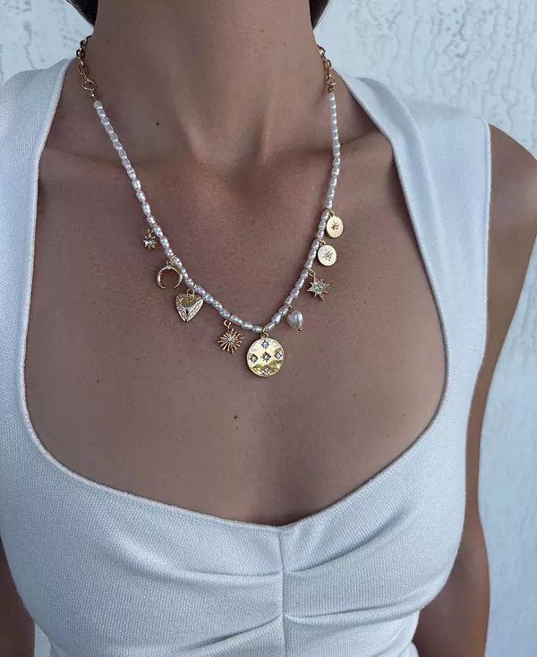 Ожерелье Adornia Gold Cultivated Pearl Charm Strand с подвесками сочетает в себе классическую элегантность и лёгкое ностальгическое очарование. Это ожерелье, состоящее из изящной нити блестящего искусственного жемчуга, украшено серией подвесок в винтажном стиле, каждая из которых придаёт ему неповторимую и неподвластную времени привлекательность. Контраст между нежными, переливающимися искусственными жемчужинами и изысканными золотыми подвесками создаёт изысканный, но в то же время игривый образ, идеально подходящий как для повседневных, так и для официальных нарядов. Это ожерелье, которое можно носить отдельно для создания сдержанного образа или в сочетании с другими украшениями, станет прекрасным дополнением к любой ювелирной коллекции.