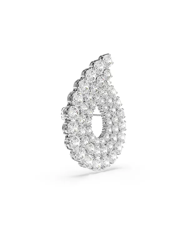 Эта ослепительная брошь, выполненная в форме сверкающей капли дождя, добавит яркости любому наряду. Украшение с родиевым покрытием украшено тремя круглыми фианитами Swarovski трёх размеров для создания непревзойдённого гламура. Потрясающая демонстрация мастерства Swarovski, которую можно дополнить комплектом подходящих серёг.