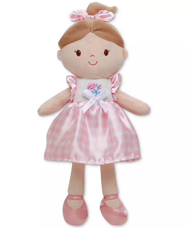 Маленьким девочкам понравится обнимать эту очаровательную и мягкую куклу от Little Me. Кукла ростом 15 дюймов одета в клетчатое платье с вышитым цветочным узором и атласными деталями. На голове у неё атласный бант в тон, а на ногах – атласные туфельки. Её мягкое тело и вышитые детали делают её идеальной спутницей для вашего малыша. Её можно обнимать дома, играть на животике или путешествовать с малышом.
