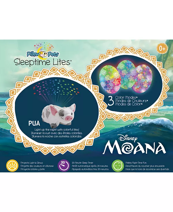 Дайте волю своему воображению — отправляйтесь в следующее путешествие с этой подушкой-питомцем Sleeptime Lite Pua. Она не только мягкая, но и излучает разноцветные огни. Поклонникам диснеевской Моаны понравится эта плюшевая свинка.