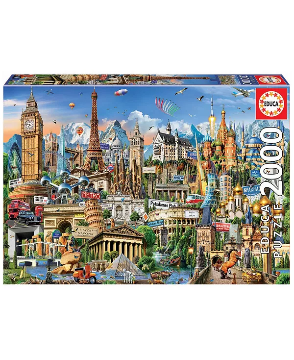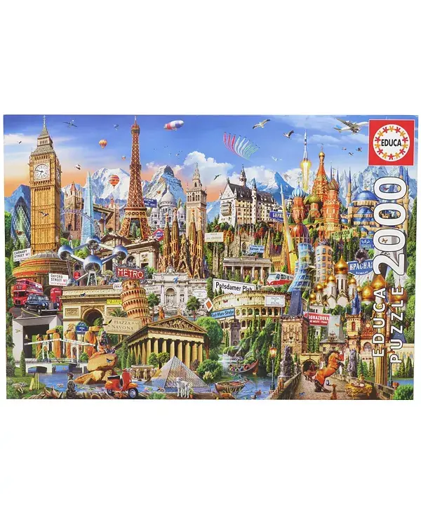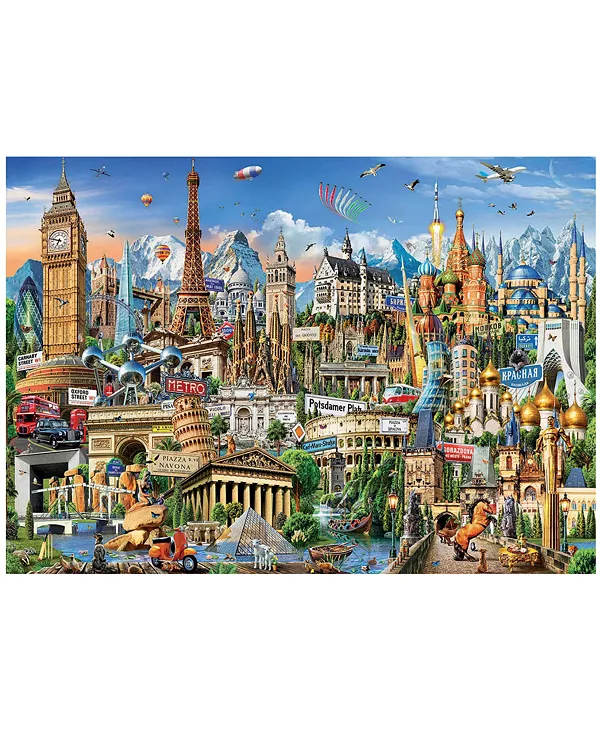 Исследуйте знаменитые достопримечательности Европы в этой сложной и красивой головоломке из 2000 деталей. С каждой взаимосвязанной деталью, которую вы соберете, вы найдете знаменитые достопримечательности по всей Европе от Англии до Италии, от Испании до Франции и многих других.