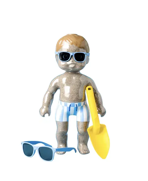 Sandy избавляет от логистических хлопот, связанных с необходимостью брать любимую куклу ребенка на пляж. Sandy создана специально для пляжа, ванны, детской площадки, где могут быть уместны игры в воде. Sandy — это игрушка для игр в воде и песке, созданная с учетом развития ребенка.
