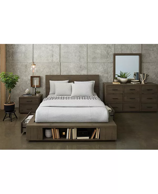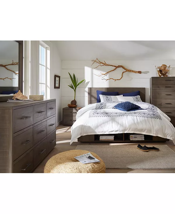 Натуральная грубо обтесанная древесина в сочетании с гладкими линиями и смытой серой отделкой этого большого зеркала станет полезным и желанным дополнением к классическому деревенскому стилю вашей спальни.