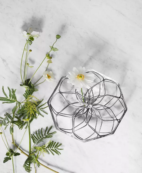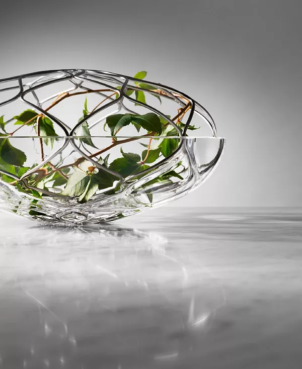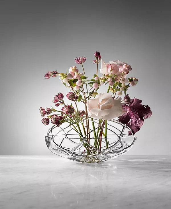Bloom вдохновлена формами природы, цветами и листьями. Прекрасные вазы Orrefors прекрасно смотрятся и сами по себе, играя лишь светом в стекле. Металлический элемент приятно контрастирует с мягкостью хрусталя. Наслаждайтесь этой вазой с цветами или без них.