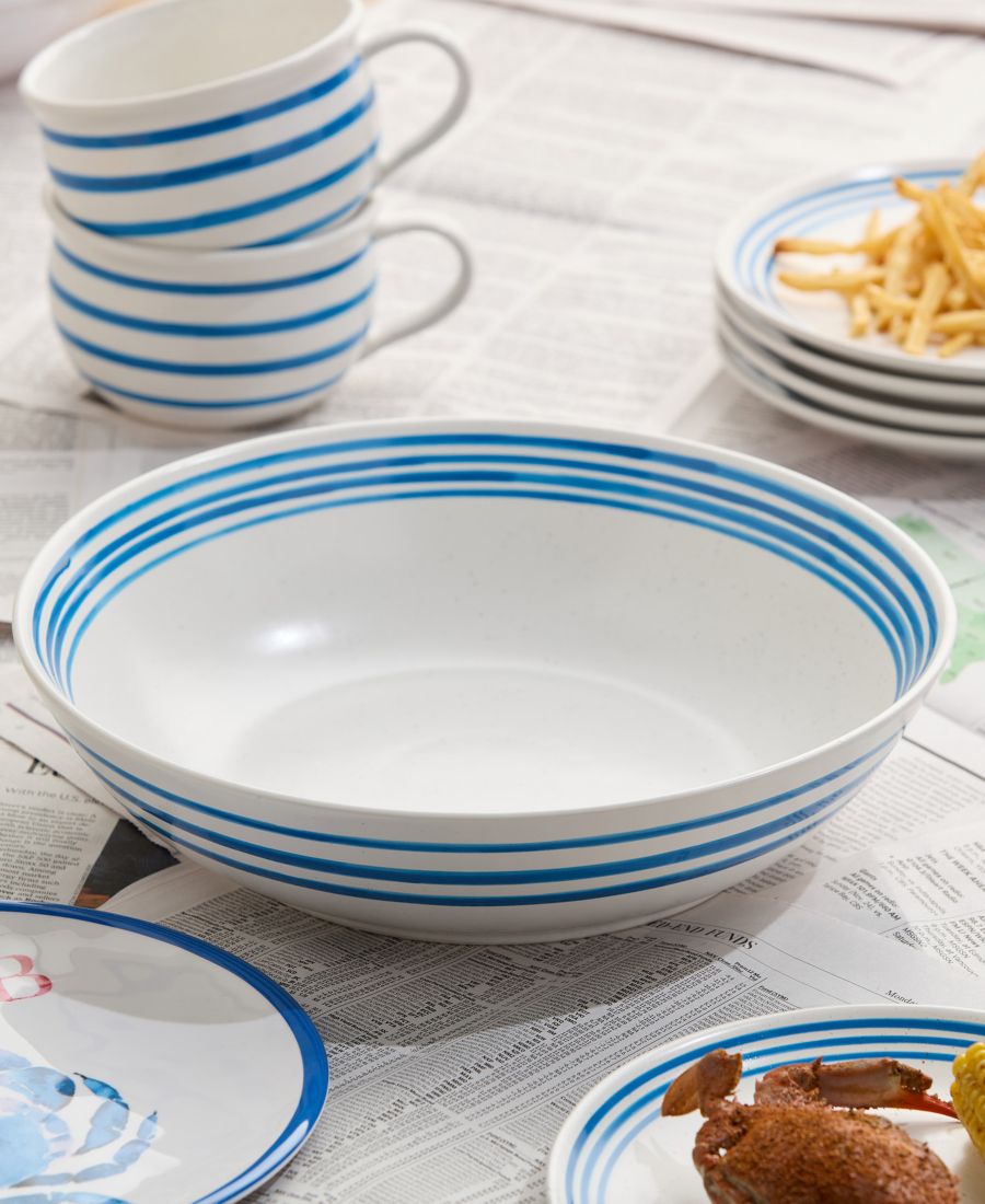 Добавьте нотку морской элегантности в свой обеденный стол с сервировочной миской из каменной керамики Dockside. Устойчивая к сколам глазурь и прочная конструкция гарантируют долговечность, а вневременной полосатый узор дополнит любой интерьер в прибрежном стиле. Будь то непринужденный ужин или праздничное застолье, сервировочная миска Dockside добавит очарования и функциональности вашему столу. Эта сервировочная миска станет прекрасным подарком для близких или красивым дополнением к вашей собственной коллекции, идеально сочетаясь с другими предметами посуды Dockside Blue для создания гармоничного образа.