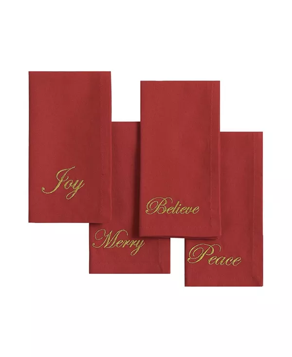 Эти эффектные салфетки изготовлены из хлопка высшего качества и имеют однотонные праздничные цвета слоновой кости, красного и зеленого с сезонными надписями золотом, что создает самый изысканный рождественский образ.