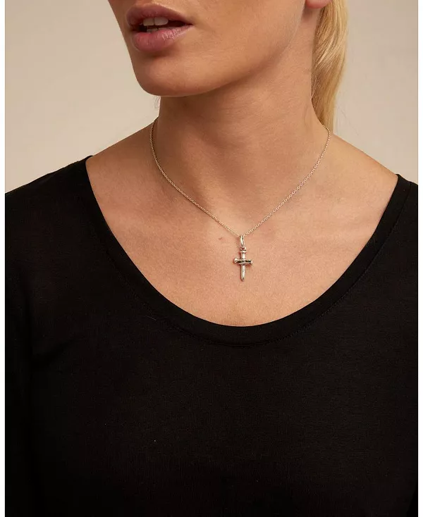Подвеска-крестик среднего размера из 18-каратного золота и серебра идеально подходит для ношения с ожерельями, серьгами или браслетами.