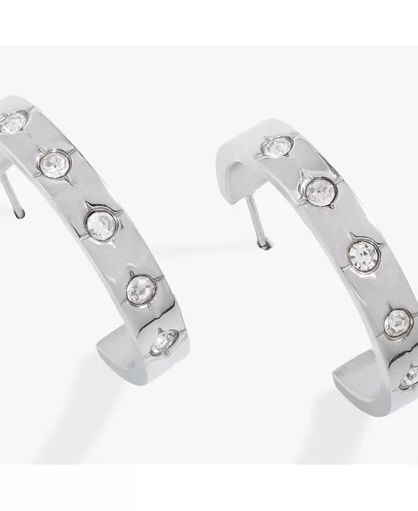 Добавьте гламурности в свой повседневный образ, добавив серьги-кольца с кристаллами и почувствуйте прилив уверенности, который дарят вам эти великолепные серьги! Эти блестящие серебряные или золотые серьги-кольца украшены звёздочками с кристаллами по центру.