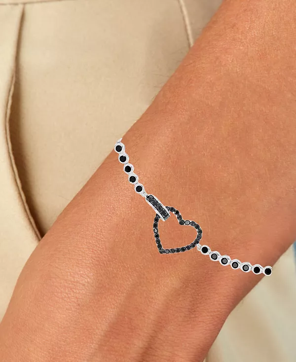 Браслет-Боло с черным кубическим цирконием в форме сердца и безеля Macy'S, silver 22 085₽