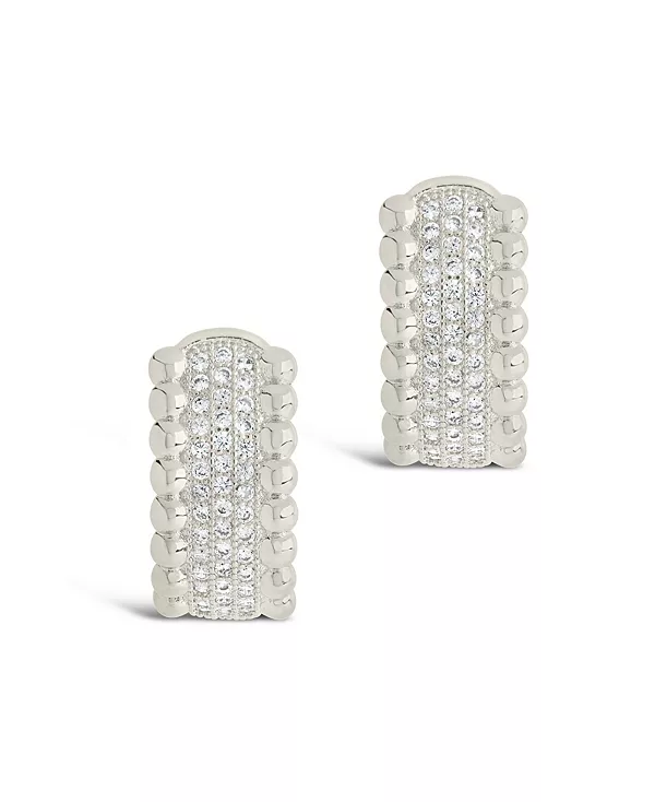 Эти королевские серьги-кольца украшены тройным слоем фианитов и надежно застегиваются с помощью фрикционной защелки.